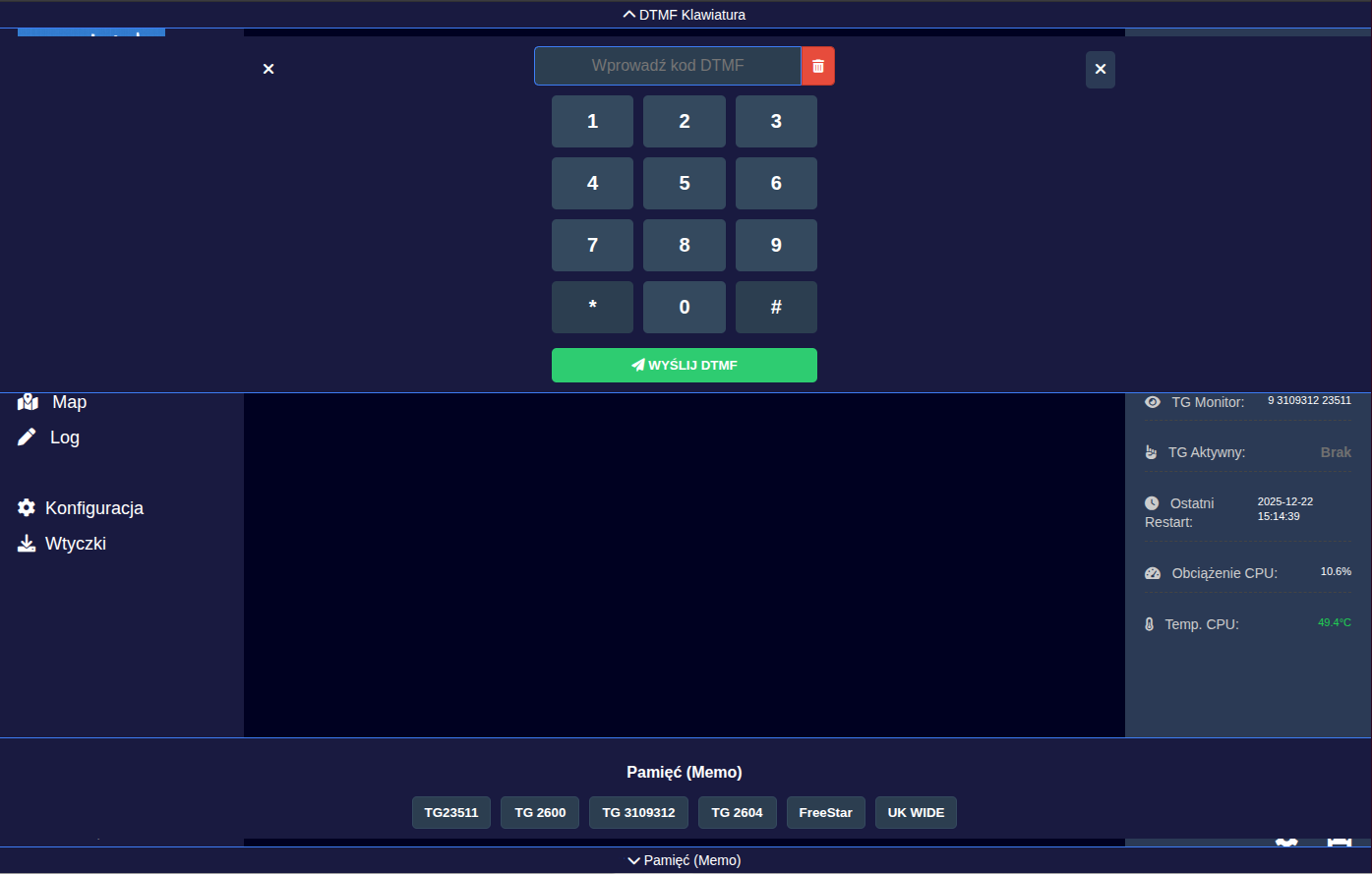 Mamy także wirtualną klawiaturę DTMF, w celu wydania komendy, lub wybrania grupy której nie mieliśmy predefiniownej w przyciskach pamieci.