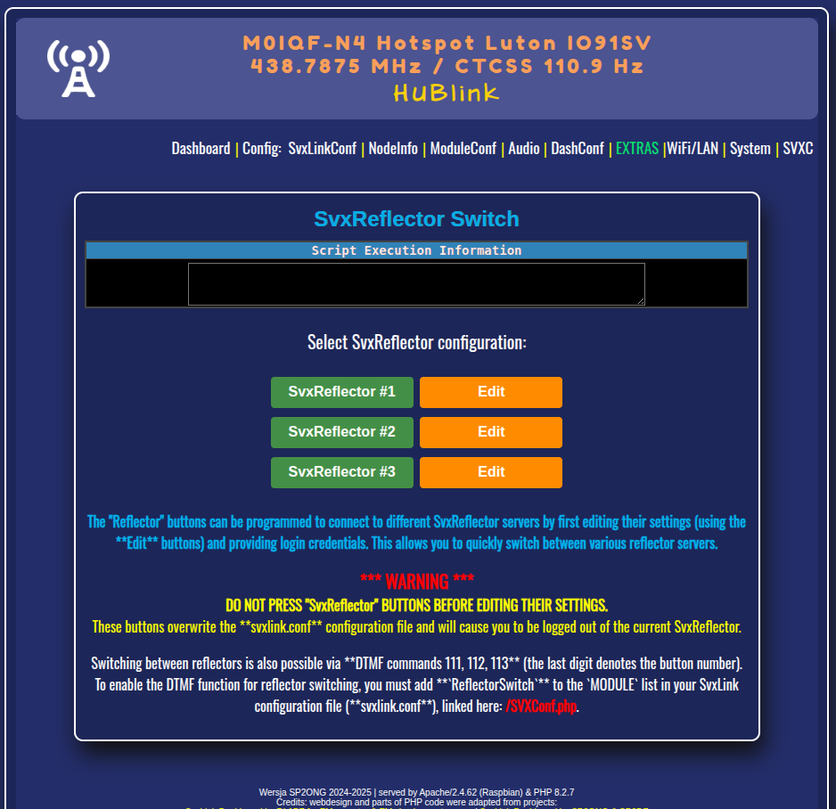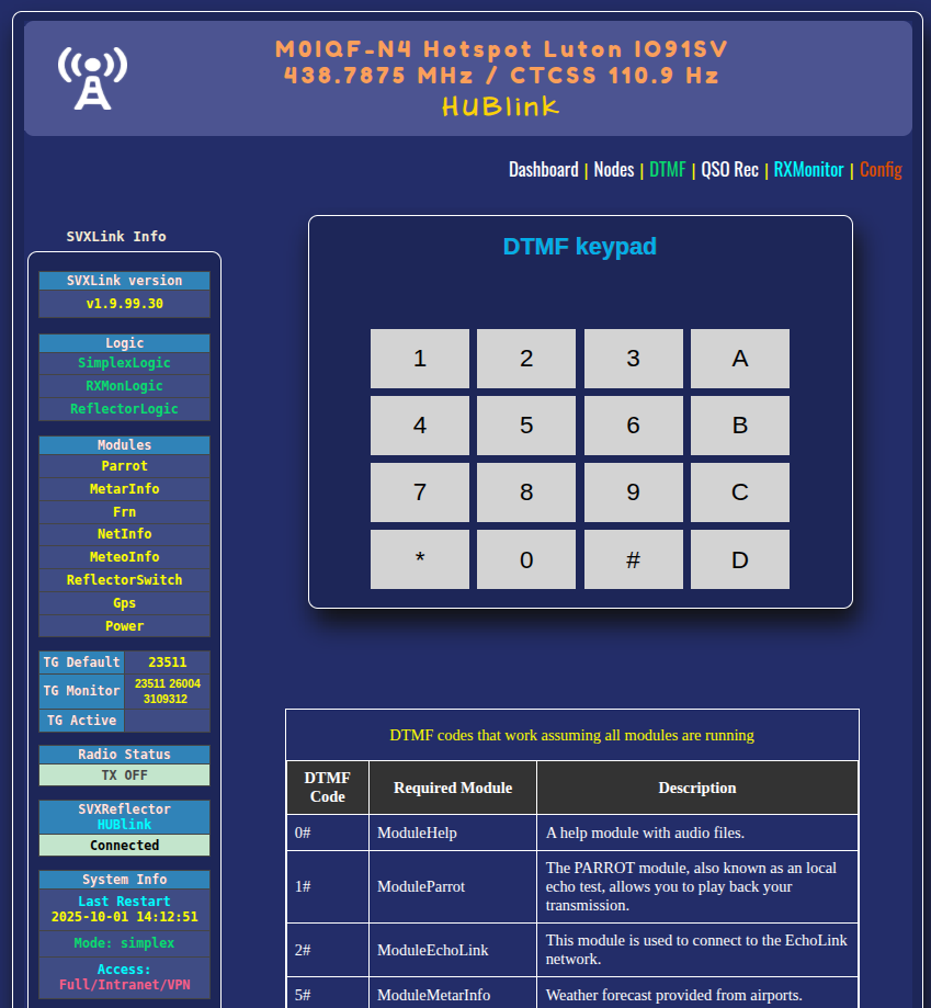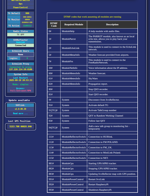 Opis ten nie ma na celu jedynie pokazanie mojej przygody z tym obrazem który pozostanie ze mną przez jakiś czas w ramach hotspot a aucie. Modernizacja dashboard miała jedynie dodanie funkcjonalności z innych moich svxlink projektów które są mi niezbędne do pracy. Abyście zrozumieli - ja nie bardzo jestem miłośnikiem grzebania w dashboard podczas jazdy samochodem, dlatego buduję sobie zabawki w opraciu o 100% sterowania DTMF - mając świadomość ryzyka że bardo łatwo jest podsłuchac takie kody i trochę napsocić. Dlatego moje hotspoty są typowo Low-Power a ich realny zasięg to maksymalnie 50 metrów w otwartym terenie. Zadaniem hotspota w samochodzie jest "dolecieć" do anteny na dachu i nie zaśmiecać pasma aby radio samochodowe mogło normalnie pracować pomimo pracy hotspot obok.