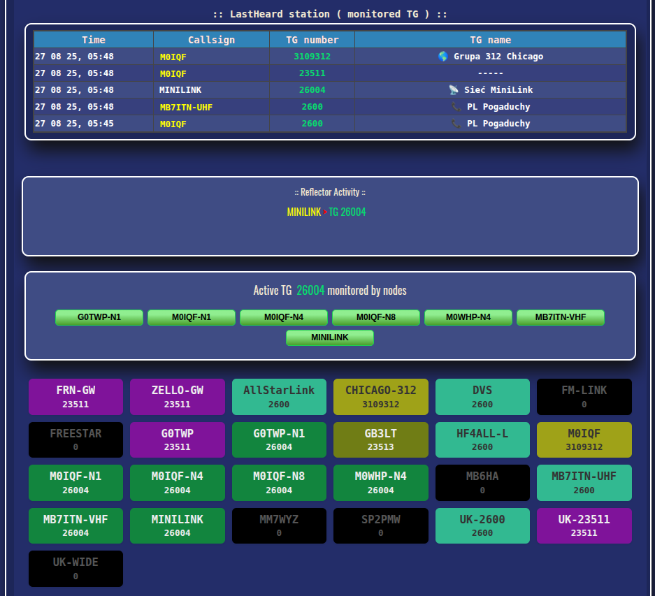 Osobiście wole jak kolory kafelek znaczą nie kto lub co to jest a co to robi. Dlatego osobiście mam wersję gdzie kolor oznacza aktywna grupę TG. Kolejnym powodem był fakt ze tą już miałem i jest ona kompatybilna z oryginalnym API svxreflector.
