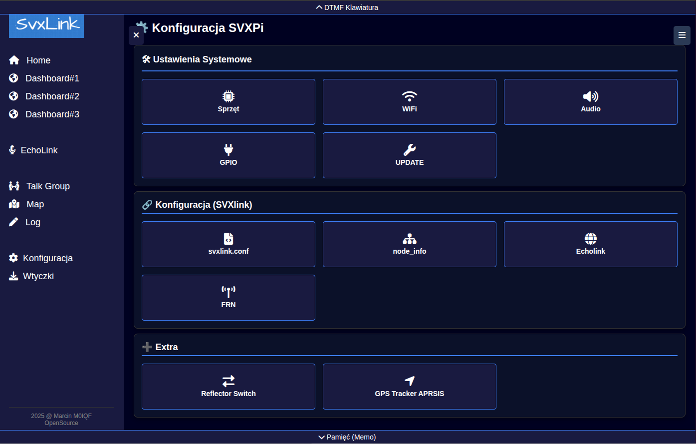 Kolejne to funkcje które nie mają nic wspólnego z svxlink jako takim a służą jedynie jako dane pomocnicze dla DASHBOARD. Ich obecnośc tutaj wynika chyba z chęci posiadania jednego głównego pliku konfiguracyjnego dla systemy svxlink + dashboard.