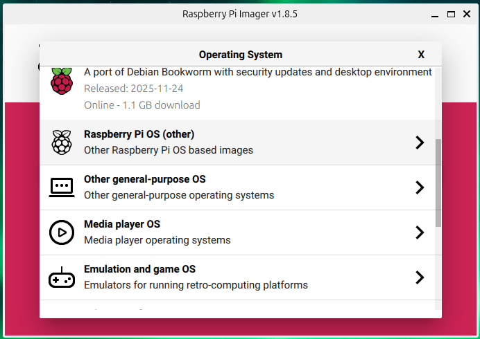 Na naszym komputerze instalujemy sobie program RaspberryPi Imager który mozna pobrać w tej strony - https://www.raspberrypi.com/software/