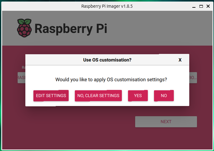 Wyskoczy nam okno z zapytaniem czy chcemy dokonac personalizacji naszego obrazu. Klikamy Edit Settings