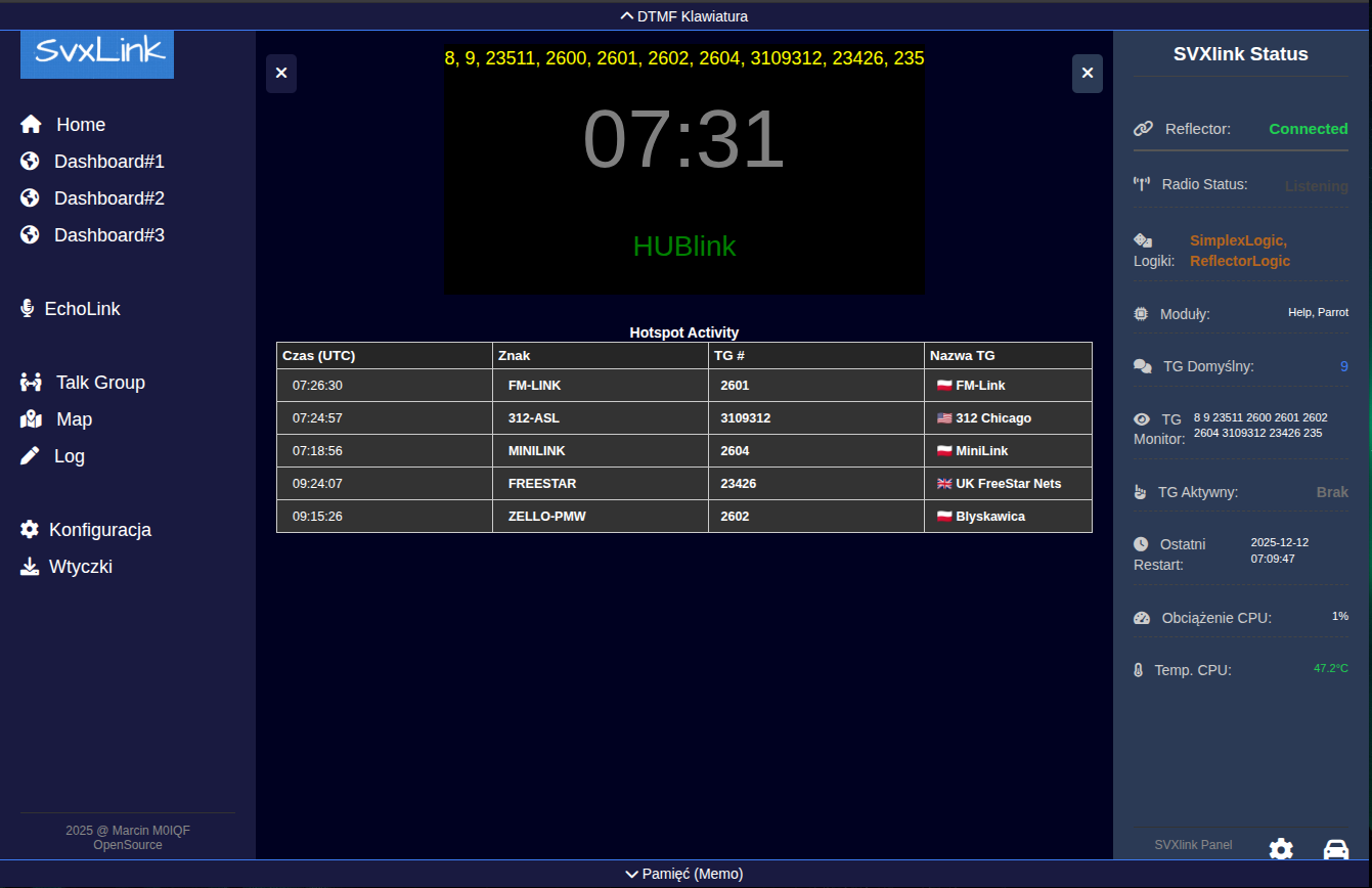 Cały ten opis powstał podczas budowania PiHOT 2.0 - svxlink hotspot za mniej niż 150PLN - i zaznaczam że wszelkie testy wykonywałem na Naszym testowym serwerze HUBlink ( http://portal.d4a.uk/ )