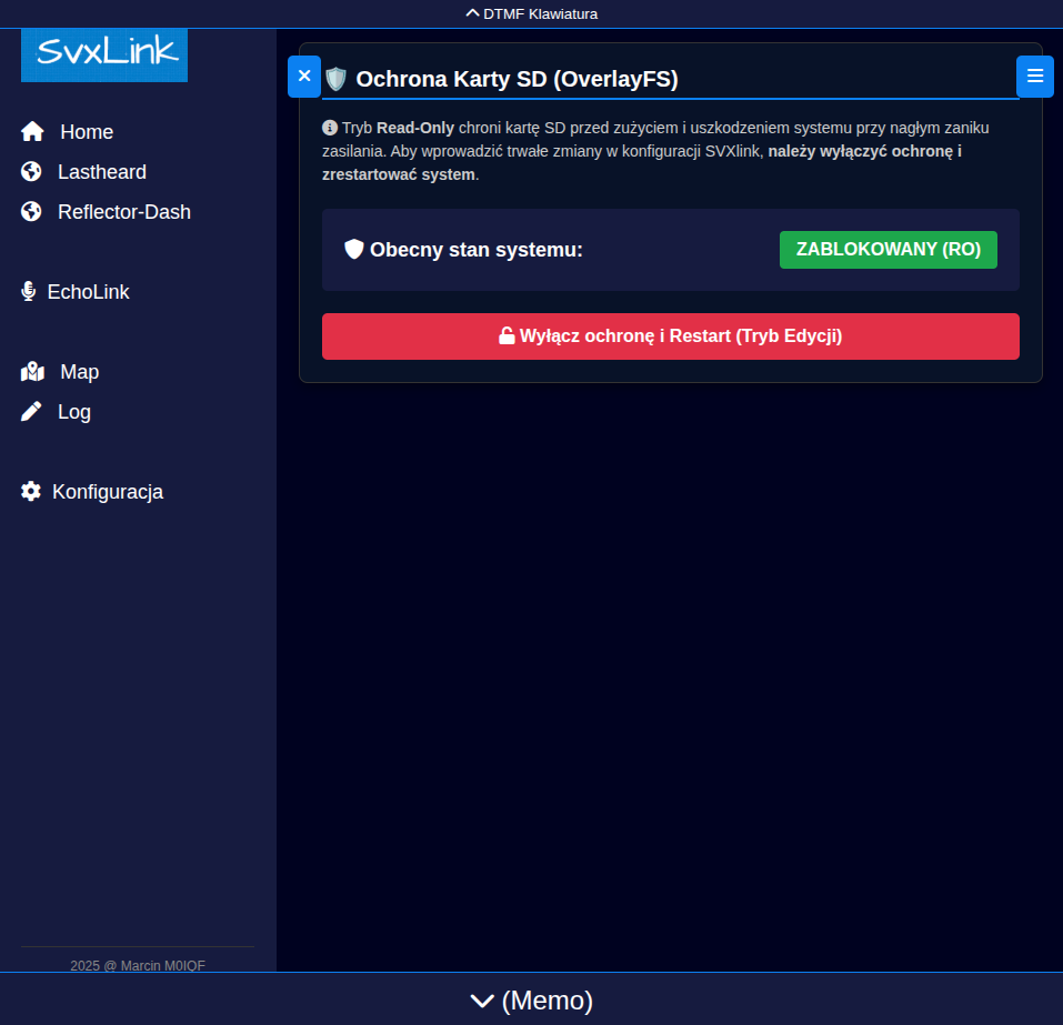 Dokonywanie zmian konfiguracyjnych na ZABLOKOWANEJ karcie wprowadzi te zmiany wżycie ale jedynie do momentu restartu systemu, ponieważ system pracuje z pamieci RAM czyli nietrwałej . Po restarcie przywrócone zostaną ustawienia z karty SD czyli te których nie zmodyfikowaliśmy ponieważ karta była ZABLOKOWANA