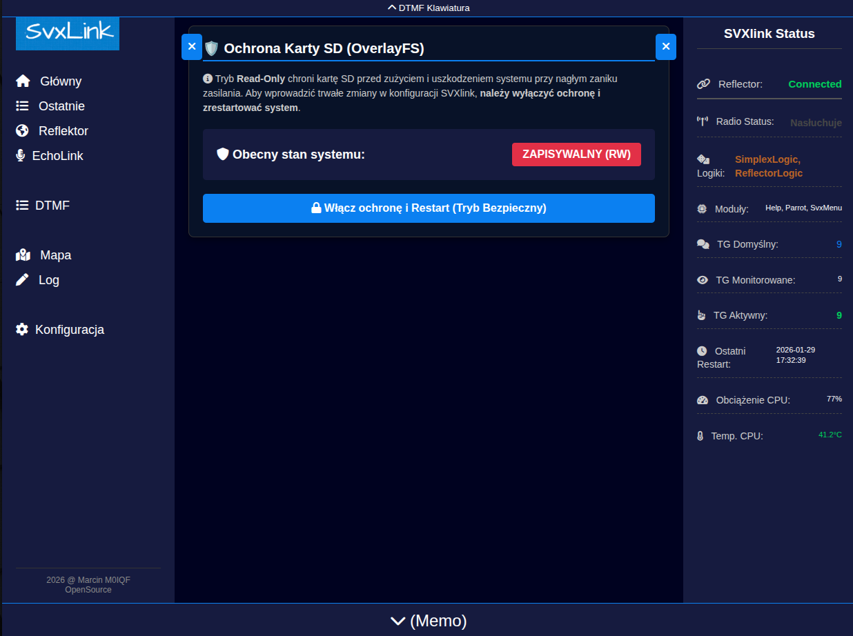 Projekt ten w założeniu miał być prostym i lekkim dashboardem, ale ostatecznie urósł do roli kompletnej "bazy" (obrazu systemu) dla hotspotów FM na bazie RaspberryPi - a za fakt że się to tak rozrosło moge podziękować SierraEcho Team którzy byli jednymi z pierwszych BETA-testerów i dzielili sie uwagami odnośnie tej mojej "cegiełki" na dobry poczatek i start sieci SQlink.