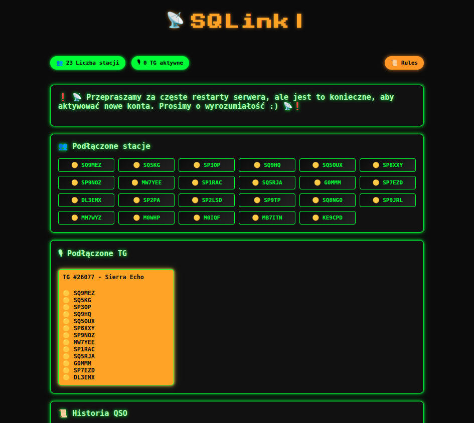 Z rado艣ci膮 przyj膮艂em osobi艣cie fakt 偶e SQLink jest otwarty na wsp贸艂prac臋 na zasadach partnerskich i s膮 bardzo otwarci na po艂aczenia mi臋dzy serwerowe co z Naszego punktu widzenia jest kluczowe. Dzi臋ki wsp贸艂pracy z聽SierraEcho Team mamy po艂膮czenie mostowe z TG SierraEcho Tg26077 jak i nasza TG 23511 jest dost臋pna w sieci SQlink.聽 Podobna sytuacja jest z kolegami w Chicago-312 TG 3109312